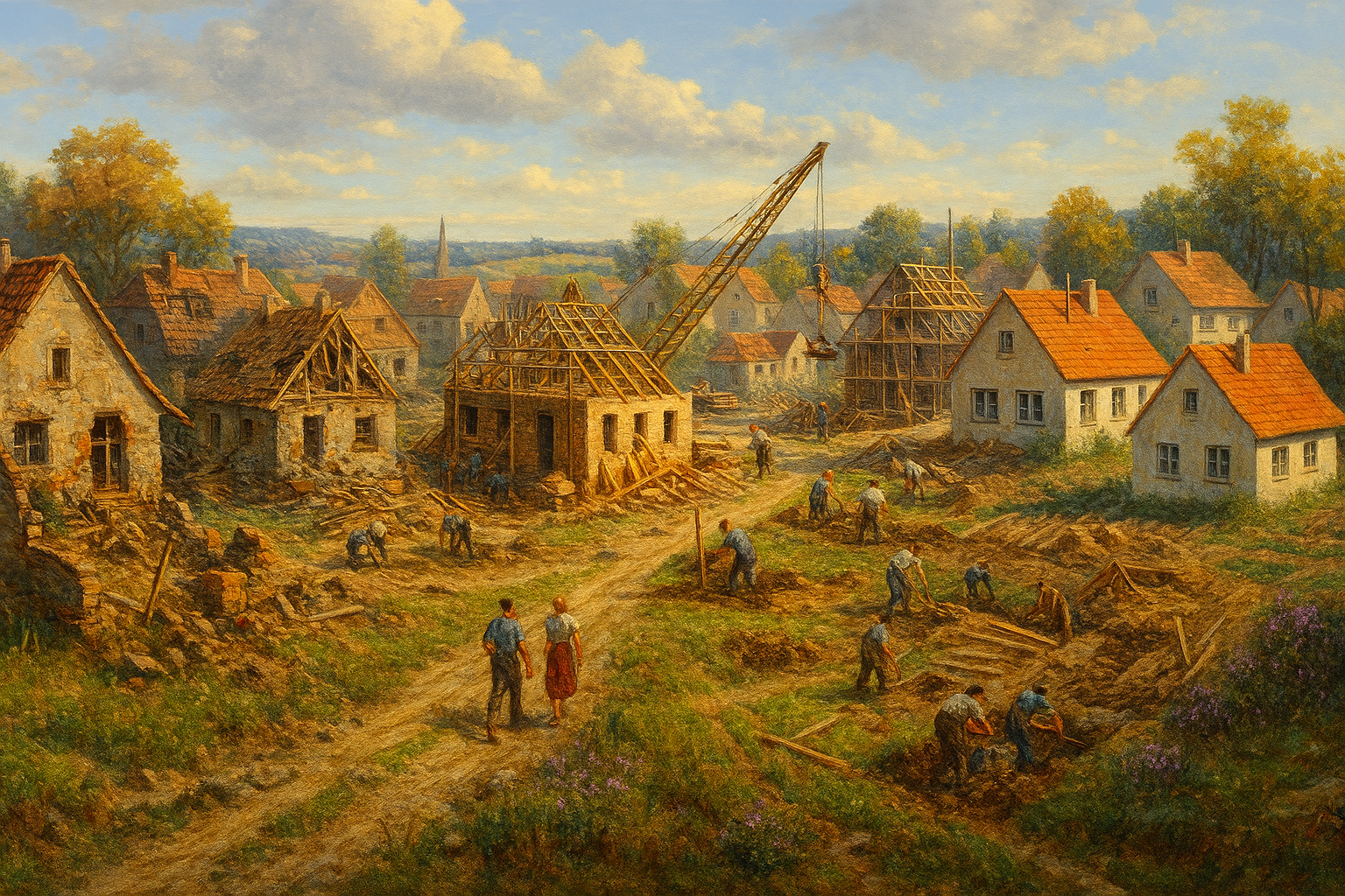 Während die Städte noch in Trümmern lagen, boten die Gemeinden etwas, das überlebenswichtig war: Land und Nahrung. Selbst wenn die Felder karg waren, bedeuteten sie doch eine Chance auf Selbstversorgung. Viele Flüchtlinge wurden in die Landwirtschaft eingebunden, halfen bei der Ernte oder bauten neue Siedlungen am Dorfrand. So wurden die Gemeinden zu Zentren des Wiederaufbaus im Kleinen.