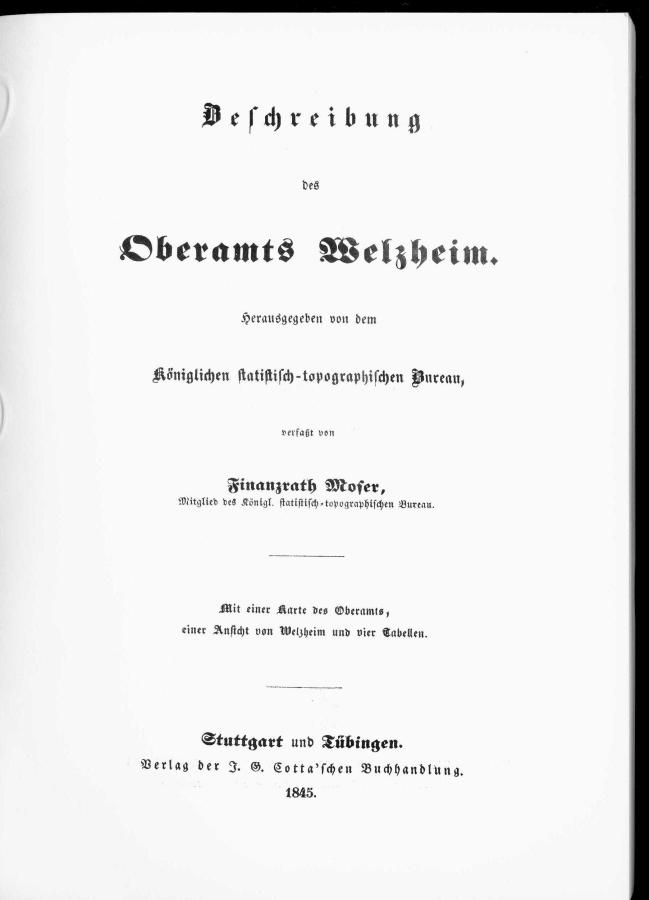 Die Beschreibung des Oberamts Welzheim erschien 1845 als 22. in der 64 Titel umfassenden ersten Serie der Beschreibungen aller württembergischen Oberämter und ihrer Gemeinden.